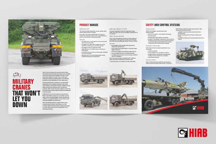 A suite of four A4 brochures highlighting HIAB GBO's core product ranges including an overall corporate product brochure.